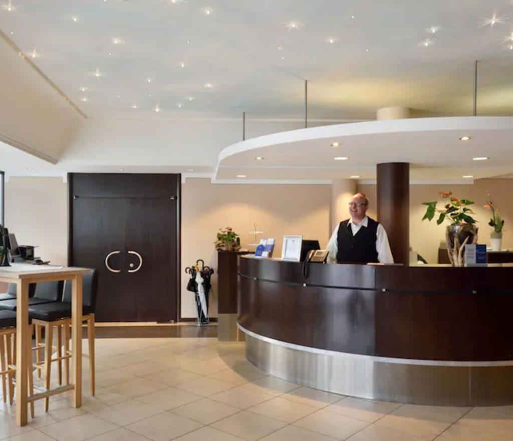 The hotel staff speak fluent English, German, and French, and check-in was possible even via self-service kiosk if arriving after hours. The room is equipped with a contactless lock system, and daily housekeeping can be declined in favor of ecological credit (redeemable as a coffee or snack).